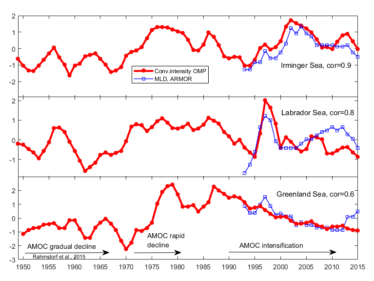 Климатическая изменчивость океана и атмосферы Анализ изменчивости ледовых условий вдоль Севморпути в прошлом, настоящем и будущем Арктическое усиление и влияние Атлантики Алгоритмы идентификации и оценки характеристик по спутниковым и модельным данным Оценка качества проекций моделей океан-лед-атмосфера Оценка изменчивости интенсивности глубокой конвекции в океане на основе оригинальных алгоритмов Динамика вихрей в океане и их влияние на кромку льда, перенос тепла